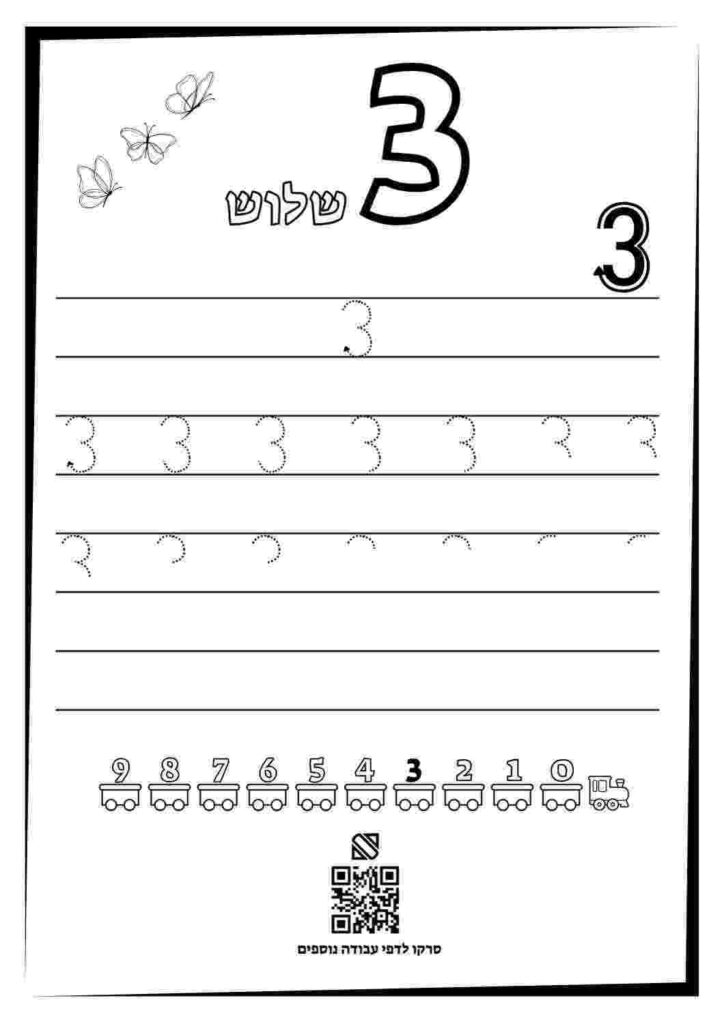 - המספר 3 דפי לימוד לכתוב ספרות 0-9