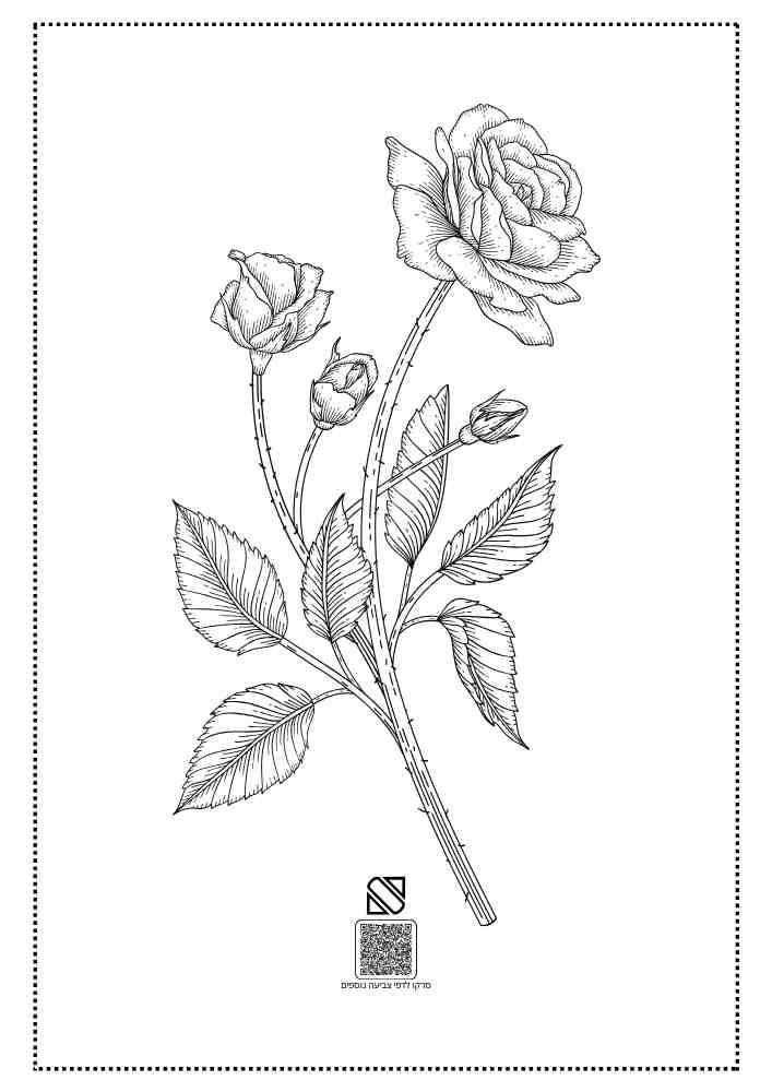 ורד עם עלים לצביעה לילדים