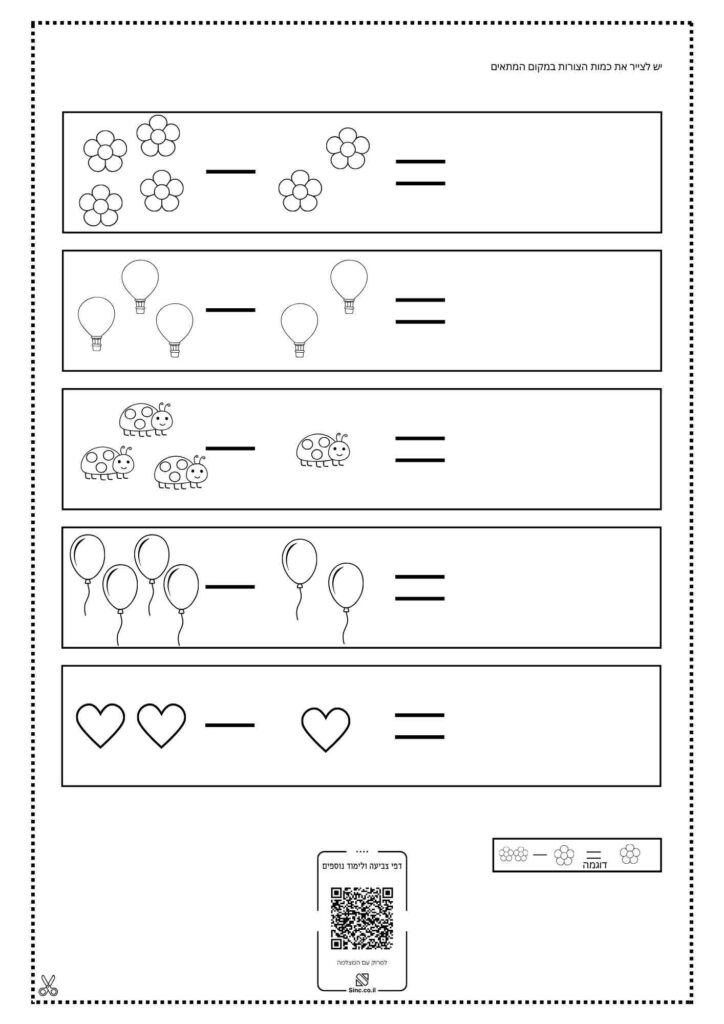 - חשבון לגיל הרך ללמוד חיסור צורות