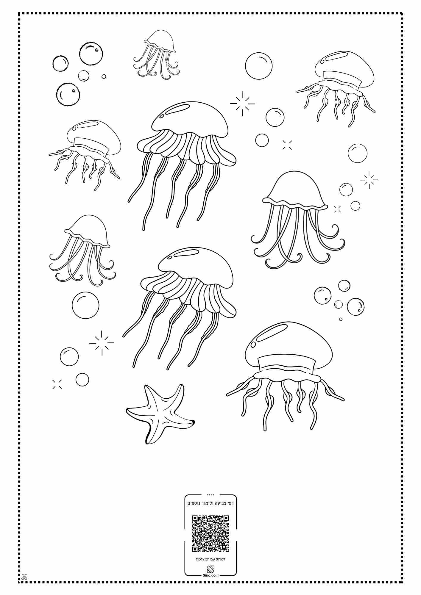 - מדוזות שוחות בנחיל לצביעה לילדים