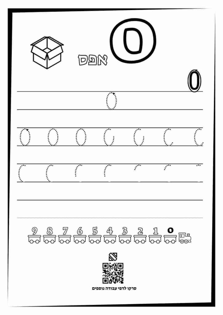 הספרה-0 דפי לימוד לכתוב ספרות 0-9