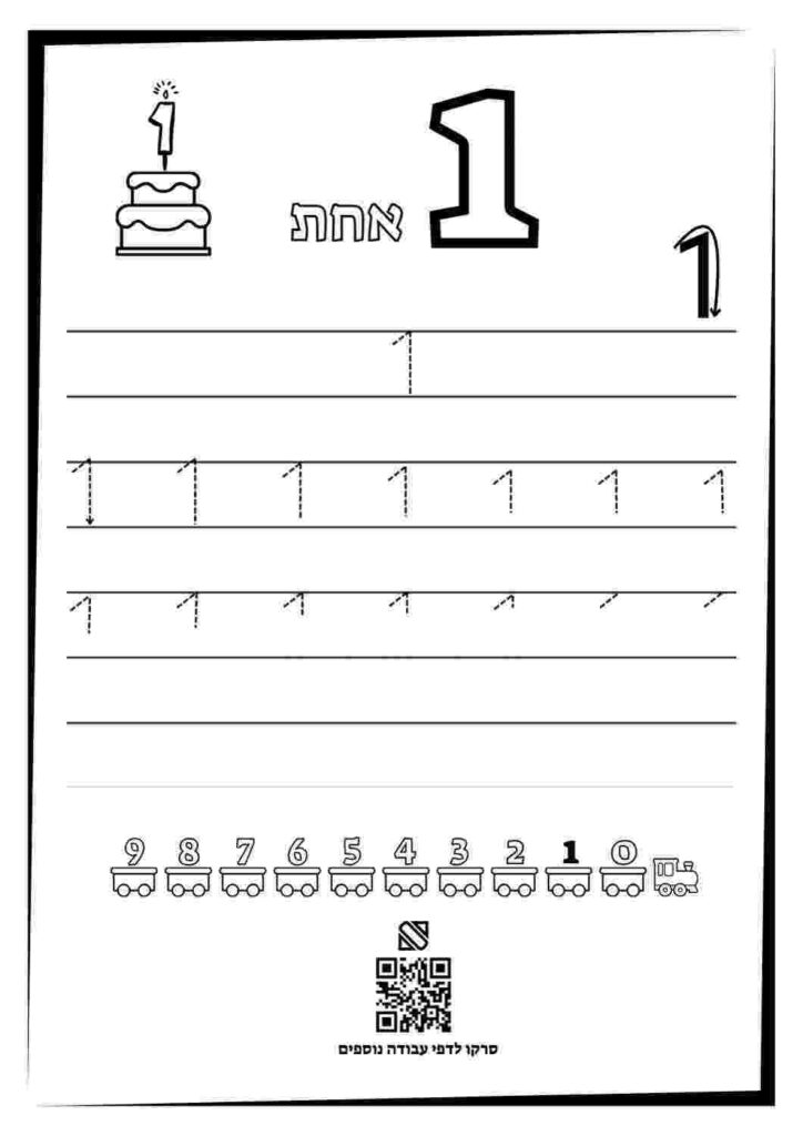 - הספרה-1 דפי לימוד לכתוב ספרות 0-9