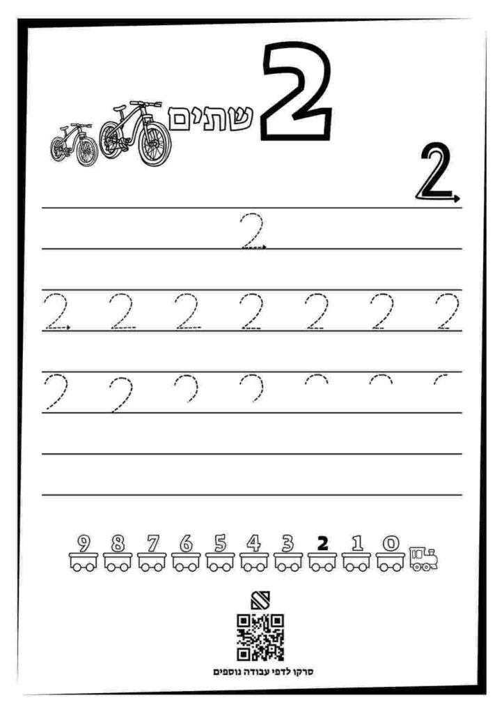 - הספרה-2 דפי לימוד לכתוב ספרות 0-9