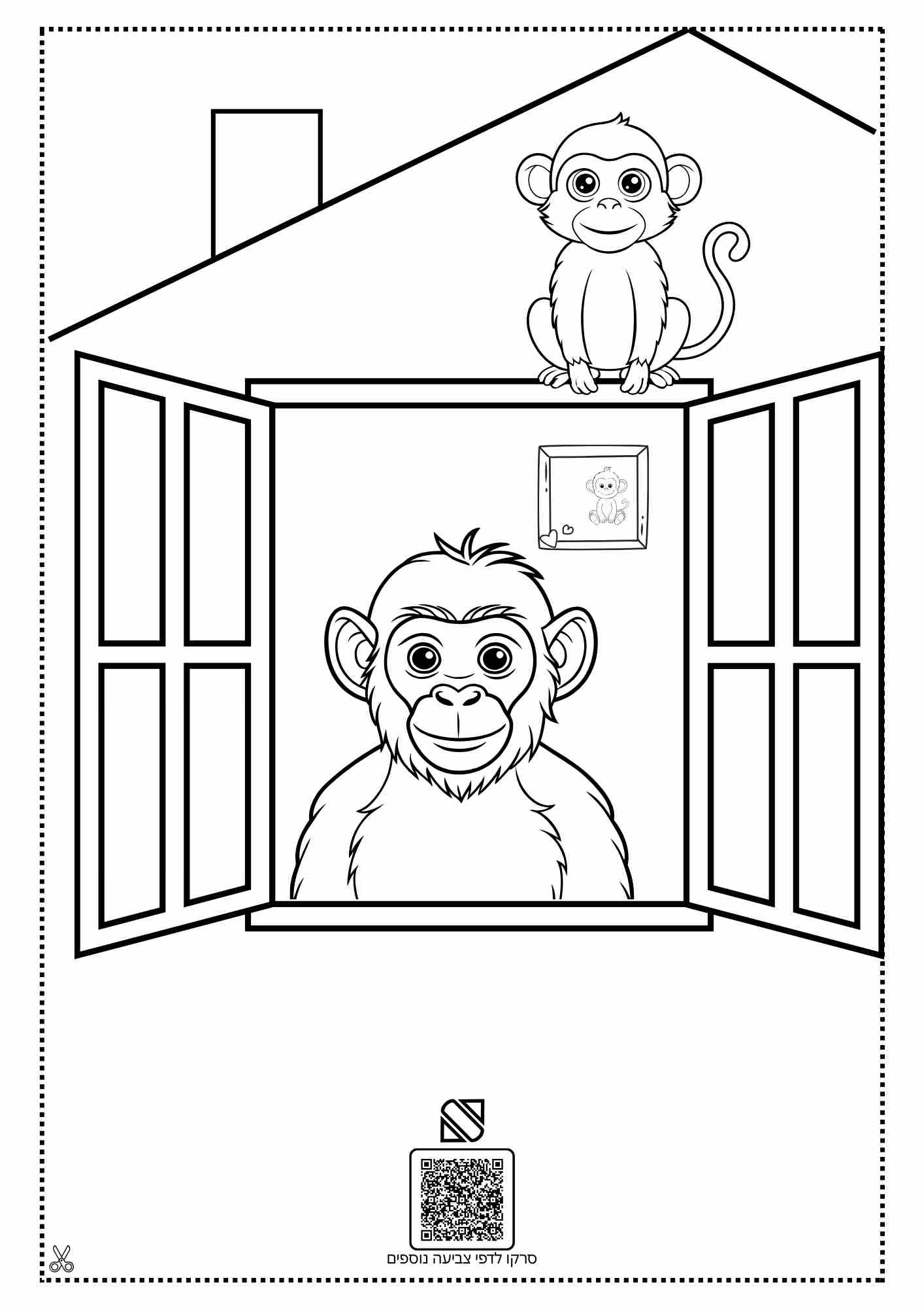 - קופים בבית דף צביעה לילדים