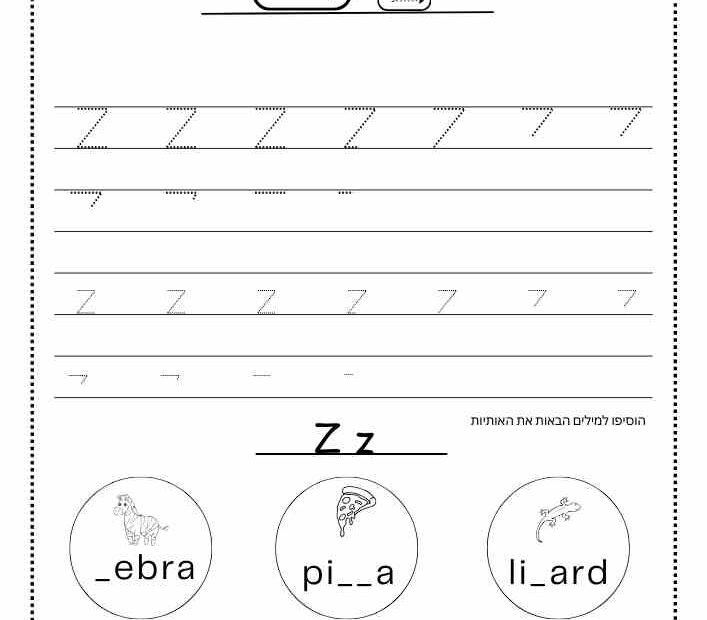 כתיבת האות Z לומדים לכתוב אותיות באנגלית!דף זה נועד לעזור לילדים לתרגל כתיבת אותיות באנגלית בצורה מדורגת. בכל שורה, הקווים… Read More »דפי לימוד באנגלית כתיבת האות Z